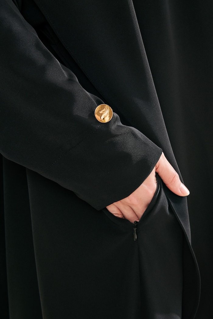 Designed with discreet zip openings at the wrists for ease during ablution without compromising coverage.