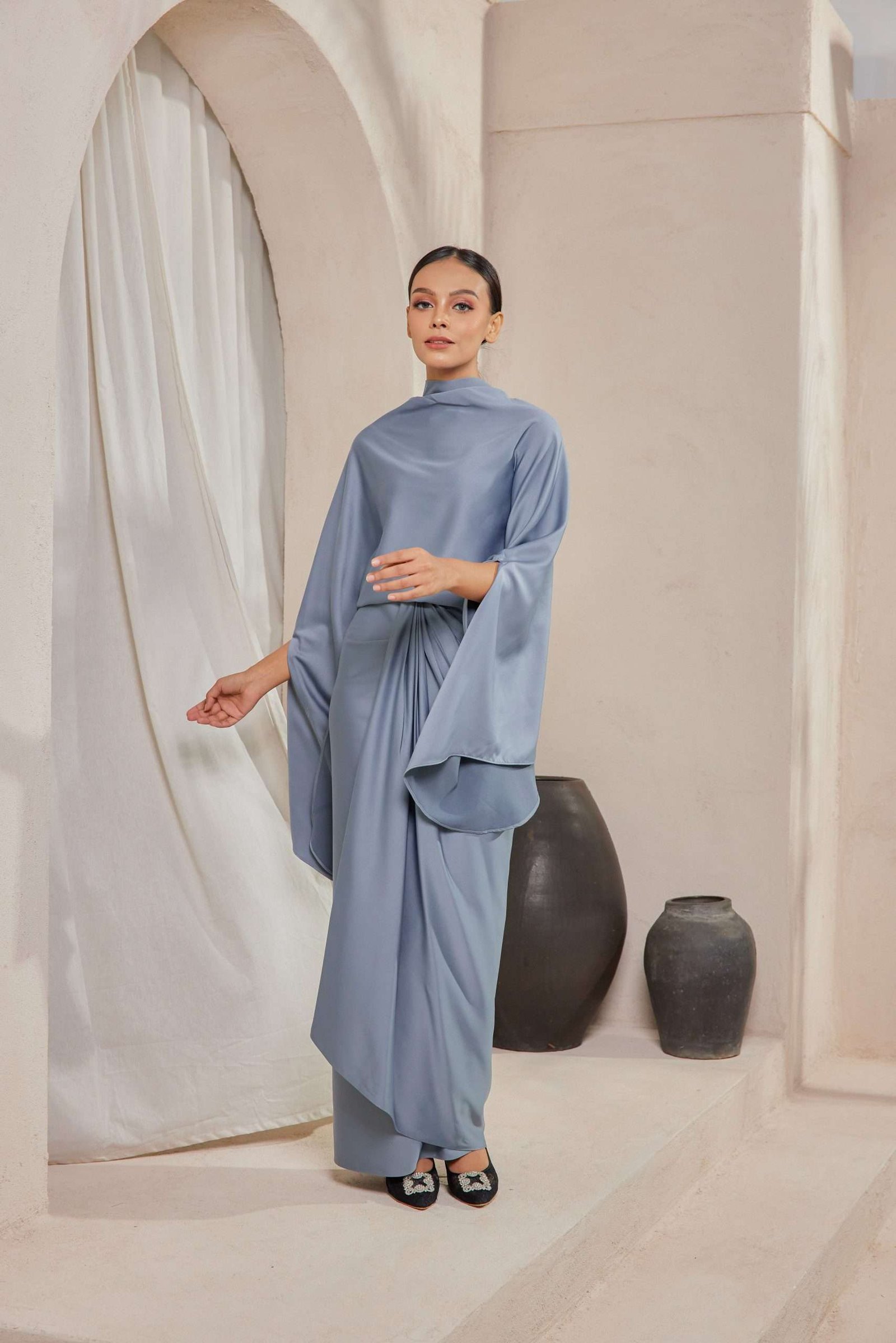 The material is breathable yet fully opaque, which makes it ideal for long events. I wore mine for a wedding as a bridesmaid and it looked so chic. Mayang by Anntsya’s collection is truly made for modern women.